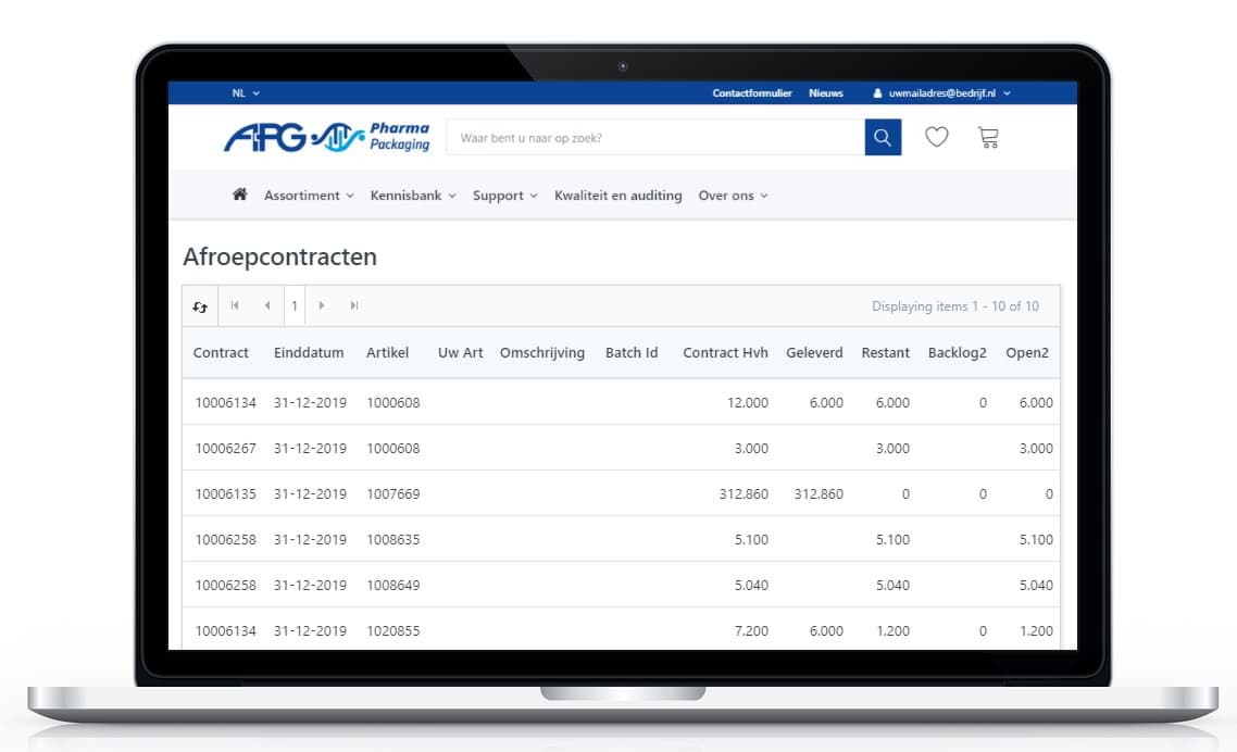 • Inzicht in uw achterstandsplanning, uw huidige voorraad, uw leveringsplan en uw afroepcontracten