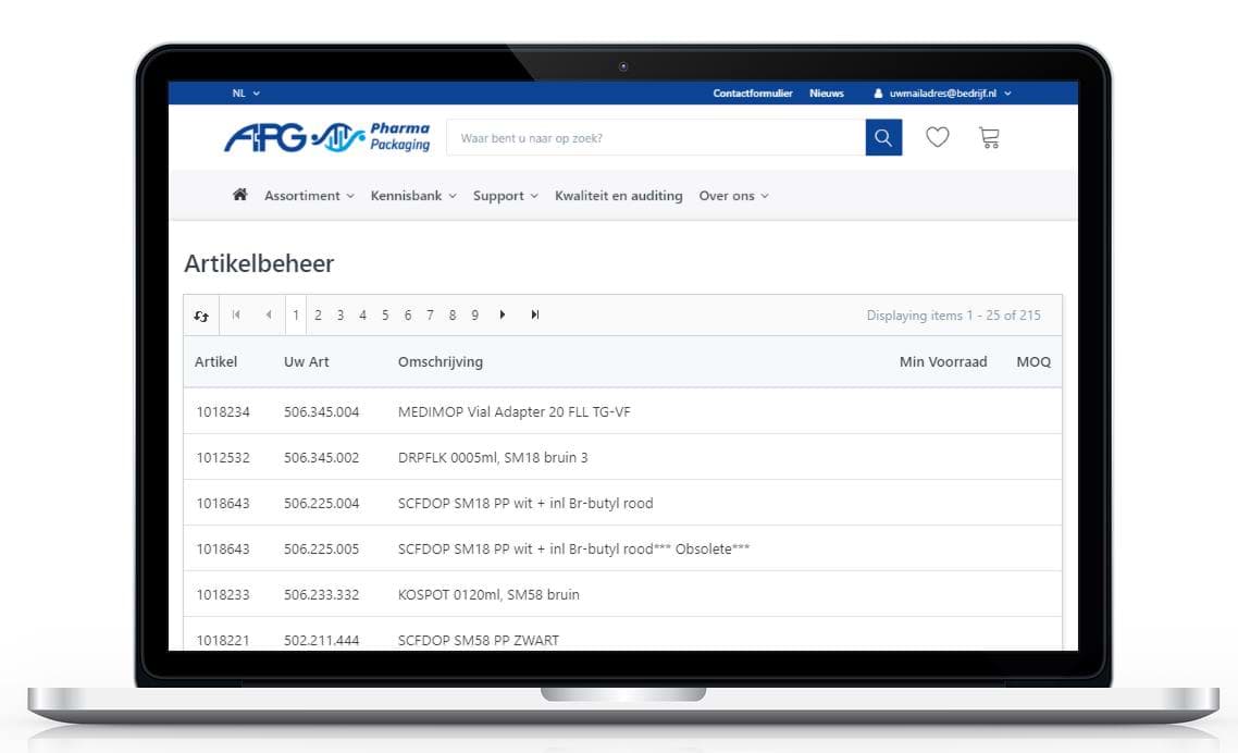 Eén overzicht van specifieke artikelen met uw klantspecifieke prijzen en bijbehorende informatie, zoals: